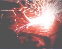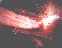 By controlling the radiance of the flame the metal is left cold enough for the technician to immediately place his hand over the gouged area. This demonstrates the unique burning characteristics of FXD. |
